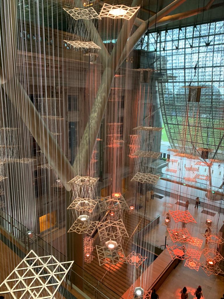 “Floating City” is a new lighting installation, installed in the 30 meters high entrance atrium of the National Gallery Singapore, by the artists’ team Nipek and KNOTS during the ‘Light to Night Festival 2020’.